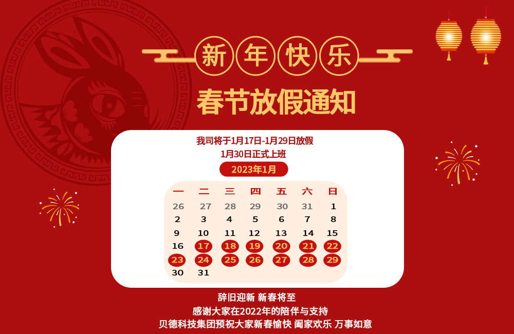 2023年春節(jié)將至,貝德科技集團有限公司在這里祝大家新年快樂,闔家幸福,萬事如意!